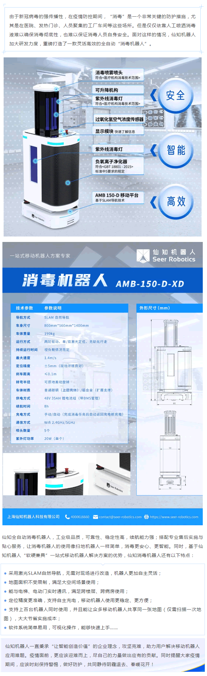 仙知消毒機(jī)器人以仙知AMB系列無人搬運(yùn)底盤為載體,集成紫外線消毒燈、超干霧過氧化氫、負(fù)氧離子凈化器三種消毒方式于一體,特別適用對(duì)消毒滅菌要求較G的負(fù)壓隔離病房、隔離緩沖區(qū)、重癥監(jiān)護(hù)室、手術(shù)室、發(fā)熱門診、接待室、檢驗(yàn)科、實(shí)驗(yàn)室、取樣間及物料傳遞間等密閉空間,以及機(jī)場(chǎng)、火車站、商場(chǎng)、寫字樓、教學(xué)樓等場(chǎng)合,通過無人化接觸消毒有效減少病區(qū)內(nèi)的交叉感染,實(shí)現(xiàn)消毒過程智能量化管理。