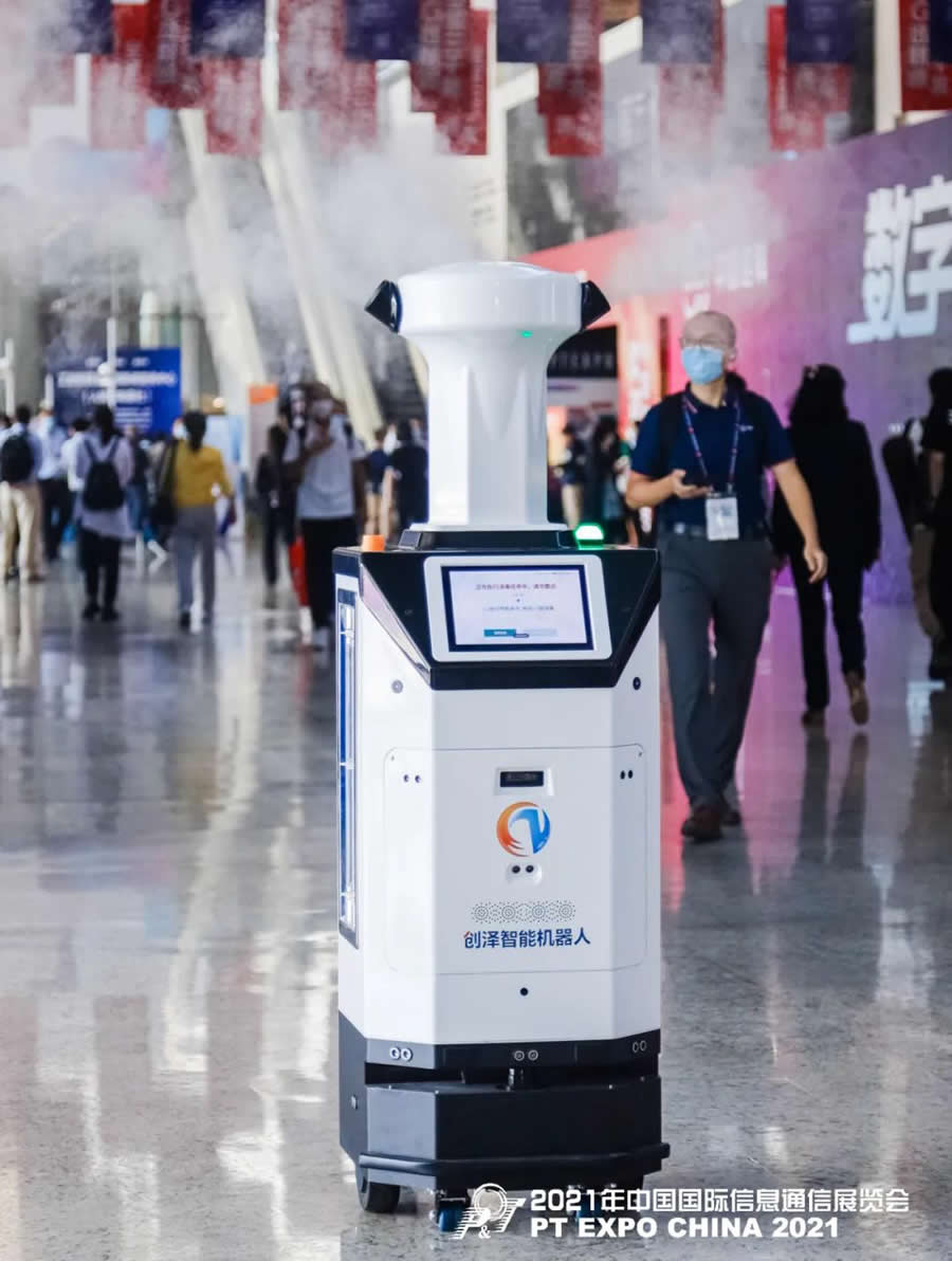 本屆PT展包含展覽、論壇、活動三個板塊,旨在為全行業(yè)搭建展示、交流、合作、共享的綜合性平臺,充分展示信息通信L域新興技術(shù)和應(yīng)用創(chuàng)新成果,分享優(yōu)秀經(jīng)驗(yàn)和成功案例,促進(jìn)信息通信L域交流與合作。創(chuàng)澤集團(tuán)受邀攜旗下智能黨建機(jī)器人、智能消毒機(jī)器人亮相本次展會,在現(xiàn)場擔(dān)任不同的“角色”提供全場景智能化服務(wù)。