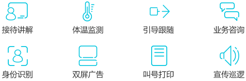 32寸主屏搭載可定制化模塊,提供迎賓接待、業(yè)務咨詢、體溫監(jiān)測等特色服務的智能大屏機器人?蓪崿F(xiàn)接待講解、引導跟隨、宣傳巡邏等功能,還可提供人臉識別、二維碼掃描、身份證讀取、叫號、打印等特色服務。