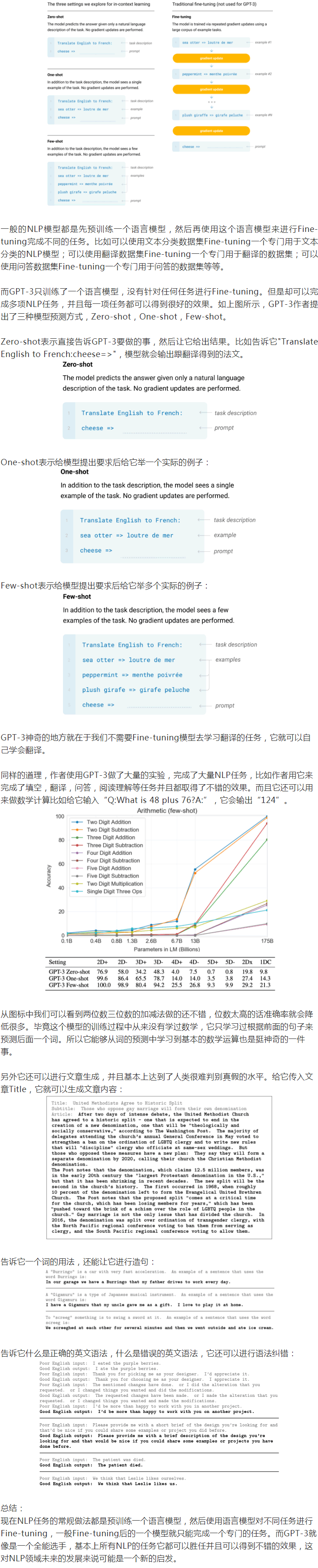 如此驚人的模型在模型的設(shè)計(jì)上和訓(xùn)練上有什么特別之處嗎?答案是沒(méi)有。作者表示GPT-3的模型架構(gòu)跟GPT-2是一樣的,只是使用了更多的模型參數(shù)。模型訓(xùn)練也跟GPT-2是一樣的,使用預(yù)測(cè)下一個(gè)詞的方式來(lái)訓(xùn)練語(yǔ)言模型,只不過(guò)GPT-3訓(xùn)練時(shí)使用了更多的數(shù)據(jù)。