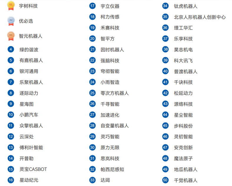 科沃斯 石頭科技 追覓科技 安克創(chuàng)新 優(yōu)必選 高仙機(jī)器人 海爾智家 普渡科技 盈峰環(huán)境 九號機(jī)器人 新時(shí)達(dá) 擎朗智能 獵戶星空 優(yōu)地科技 達(dá)闥機(jī)器人 YOGO ROBOT 極目機(jī)器人