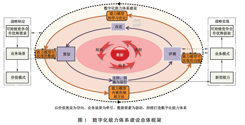 策劃(Plan):企業(yè)應(yīng)綜合研判可持續(xù)競(jìng)爭(zhēng)合作優(yōu)勢(shì)、業(yè)務(wù)場(chǎng)景、價(jià)值模式等發(fā)展戰(zhàn)略相關(guān)關(guān)鍵需求, 圍繞價(jià)值體系的優(yōu)化、創(chuàng)新和重構(gòu),以業(yè)務(wù)場(chǎng)景為牽引,識(shí)別擬打造的數(shù)字化能力(體系),并從能力模型 可處理的數(shù)據(jù)、能力模型內(nèi)嵌的規(guī)則方法、能力模型可實(shí)現(xiàn)的功能、能力模型的學(xué)習(xí)優(yōu)化等方面進(jìn)一步 明確相關(guān)數(shù)字化能力(體系)建設(shè)的具體需求。在此基礎(chǔ)上,根據(jù)業(yè)務(wù)場(chǎng)景和相關(guān)數(shù)字化能力(體系)建 設(shè)的需求,策劃形成涵蓋數(shù)據(jù)、技術(shù)、流程、組織等四要素的數(shù)字化能力(體系)建設(shè)系統(tǒng)性解決方案。