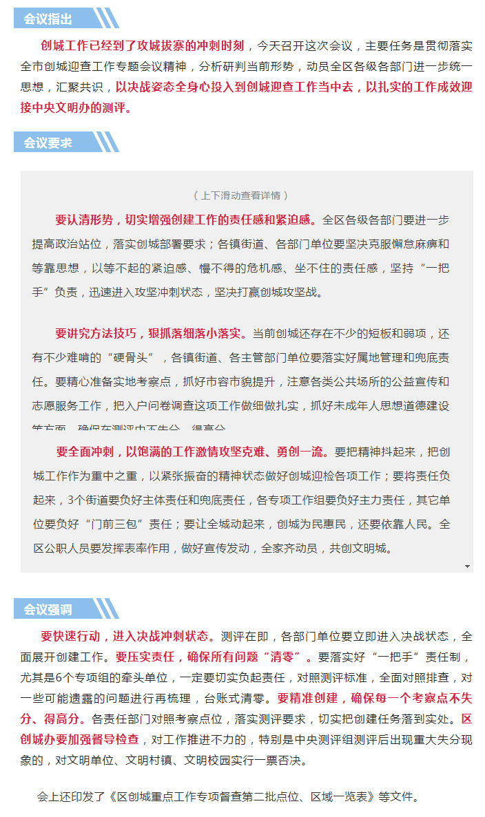 8月26日下午,東港區(qū)召開創(chuàng)城迎查工作專題會議,進一步學(xué)習(xí)貫徹落實全市創(chuàng)城迎查工作專題會議精神,動員各級各部門以決戰(zhàn)決勝、沖鋒沖刺的姿態(tài),多面查找不足,盡快補齊短板,以優(yōu)異成績迎接文明辦測評。