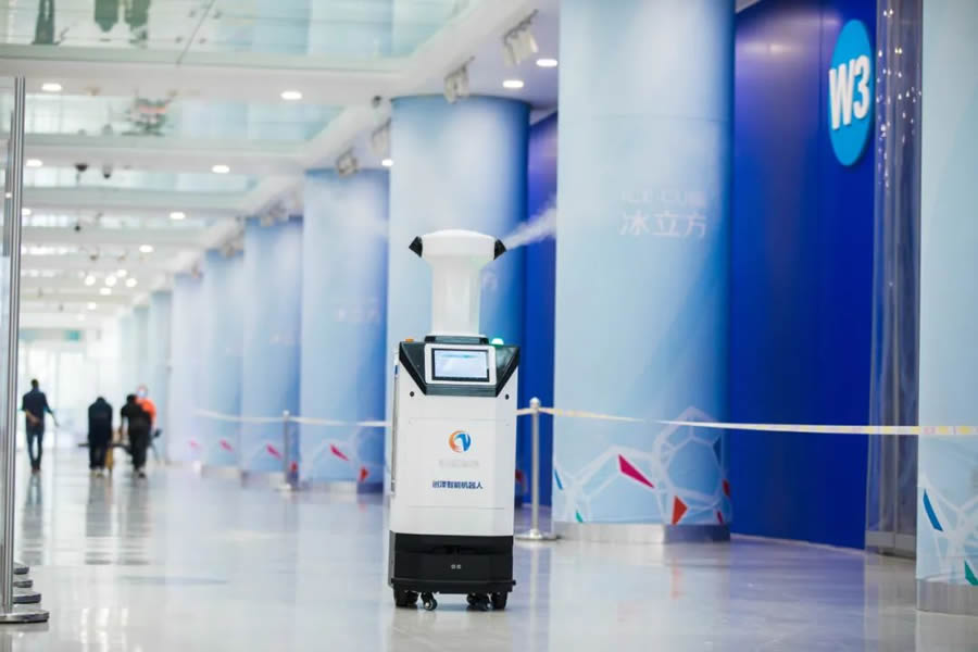 消毒機器人入駐冬奧冰立方,對公共區(qū)域的日常流動消殺,一分鐘消毒面積可達36平方米,霧化速度達到3200g/h,消殺效果非常徹底