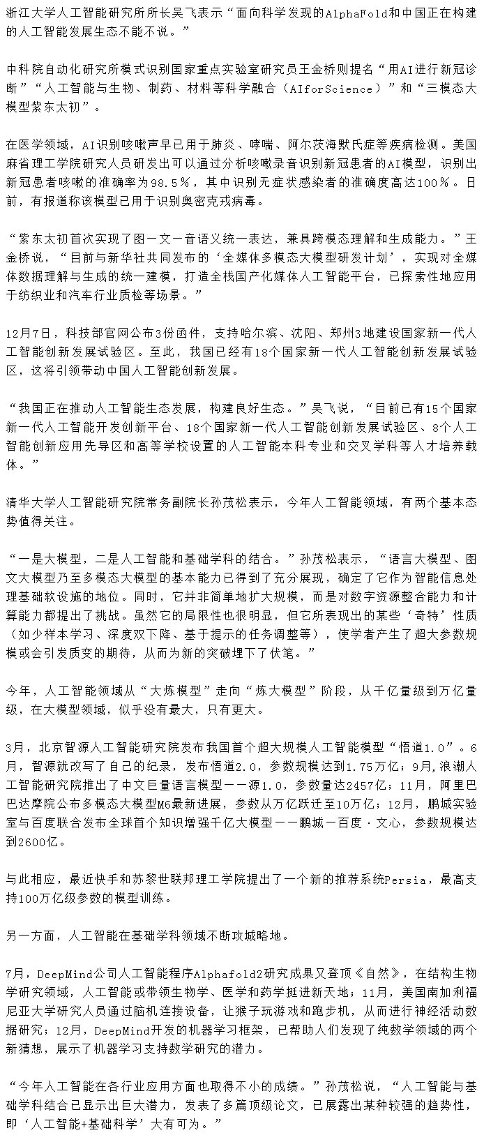 中科院自動(dòng)化研究所模式識(shí)別國(guó)家重點(diǎn)實(shí)驗(yàn)室研究員王金橋則提名“用AI進(jìn)行新G診斷”“人工智能與生物、制藥、材料等科學(xué)融合(AIforScience)”和“三模態(tài)大模型紫東太初”。