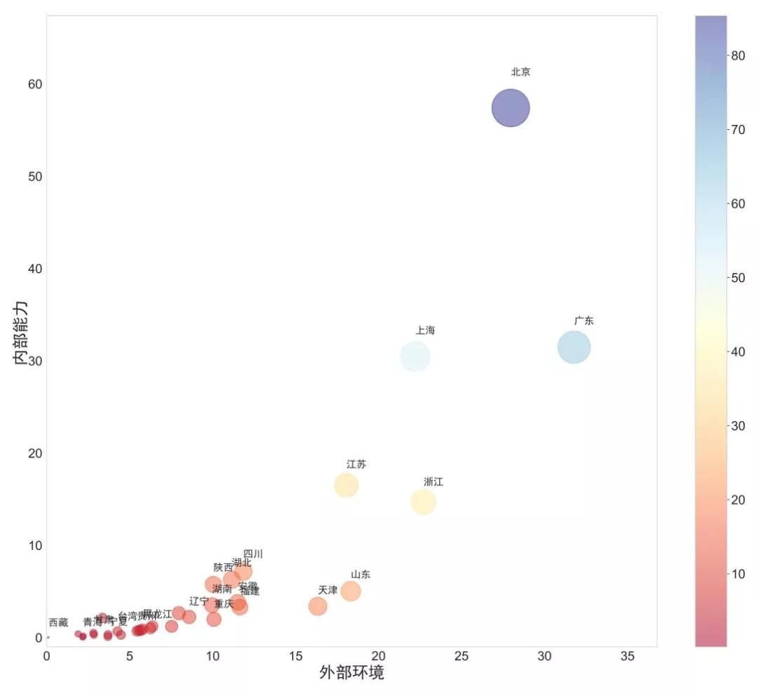 指數(shù)體系搭建方面,從系統(tǒng)性、權威性、可獲取性、可比性、發(fā)展性五大原則出發(fā),按照MECE要求,來構建指標體系。從內(nèi)部能力和外部環(huán)境兩大維度,由2個一級指標、6個二級指標、16個三級指標構成,并與多家權威數(shù)據(jù)機構合作,保障數(shù)據(jù)可信度和權威性。