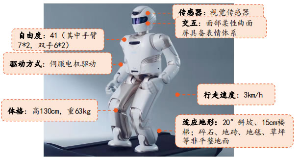 Walker主打家庭服務(wù)功能,強調(diào)環(huán)境適應(yīng)和人機交互能力。WalkerG130cm、重60kg,行走速度3km/h,可靈活適應(yīng)斜坡、 樓梯、碎石等地面環(huán)境。Walker已開發(fā)的功能主要圍繞家庭場景,包括操作吸塵器等家電、控制智能家居、端茶倒水、陪 伴兒童等。由于價格對于個人用戶較G,Walker目前主要面向商業(yè)客戶,在科技展示、商業(yè)演出、展廳導(dǎo)覽等場景使用。